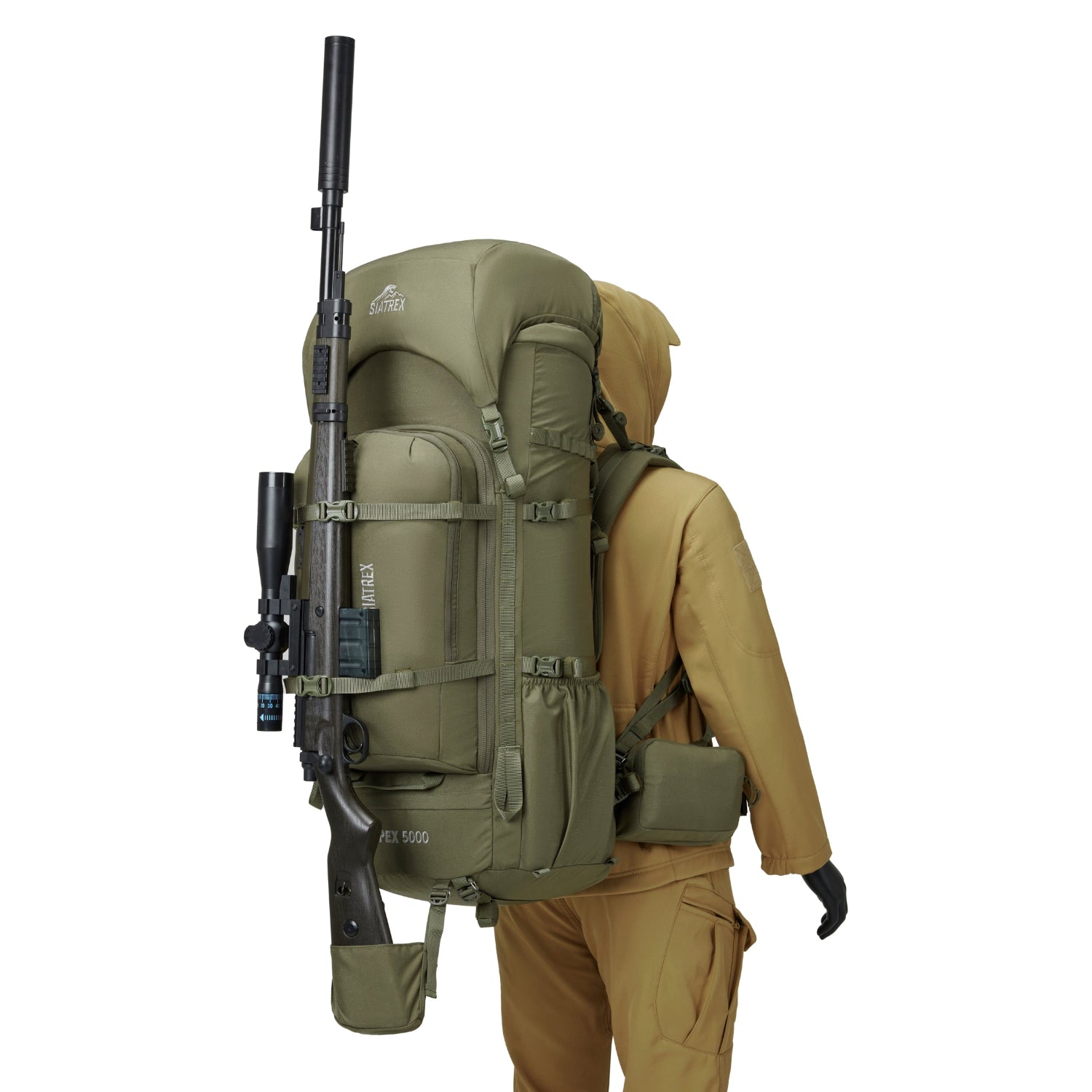 The APEX 5000 carries your rifle securely with the single‑point quick‑release sling, while the fully loaded BINO‑X keeps optics and essential gear ready on your chest. One integrated system built for efficiency, balance, and serious backcountry hunts.