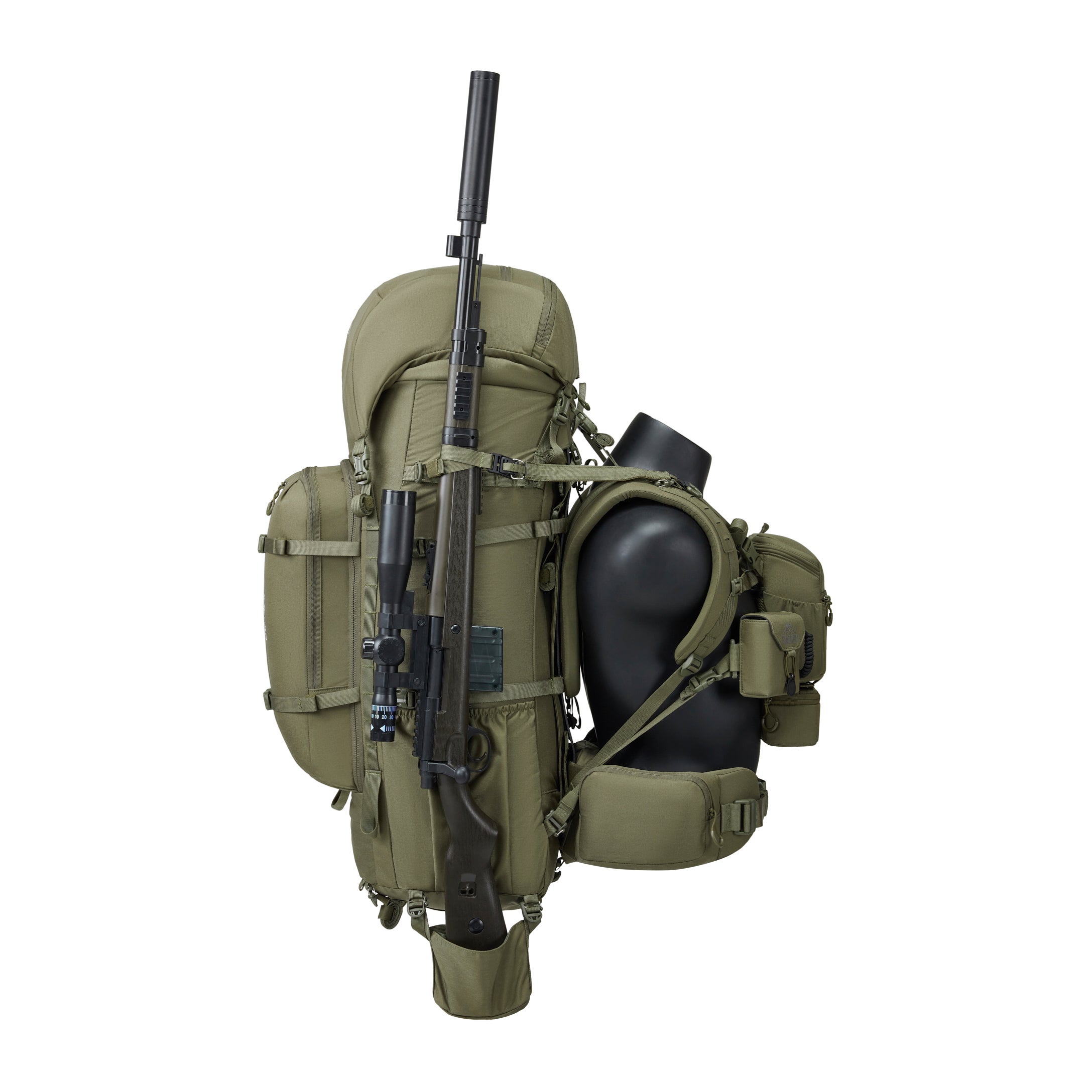 Equipped with a secure quick-release rifle system, the backpack allows fast weapon deployment in the field. MOLLE webbing on the back, shoulders, and waist supports modular attachments such as trekking poles, tools, or other gear. A shoulder-mounted MOLLE pouch designed for the inReach Mini ensures quick access in emergencies while maintaining reliable signal performance.