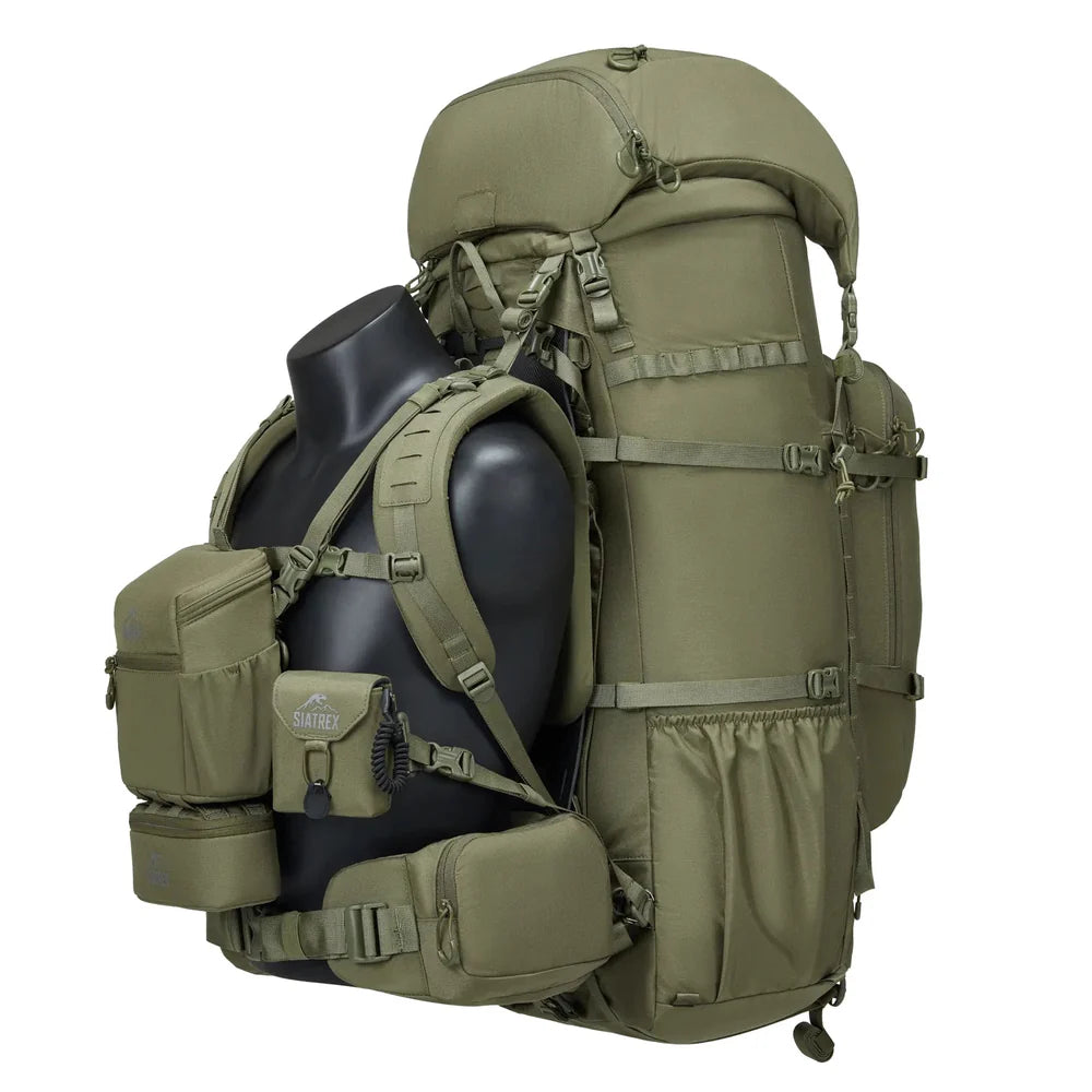 The SIATREX APEX 5000 is engineered for hunters who demand ultra-light performance, high load capacity, long-distance comfort, and a fully modular system. Its lightweight carbon fiber frame supports up to 150 lbs, offering strength and durability for multi-day expeditions, challenging terrain, and demanding hunts.