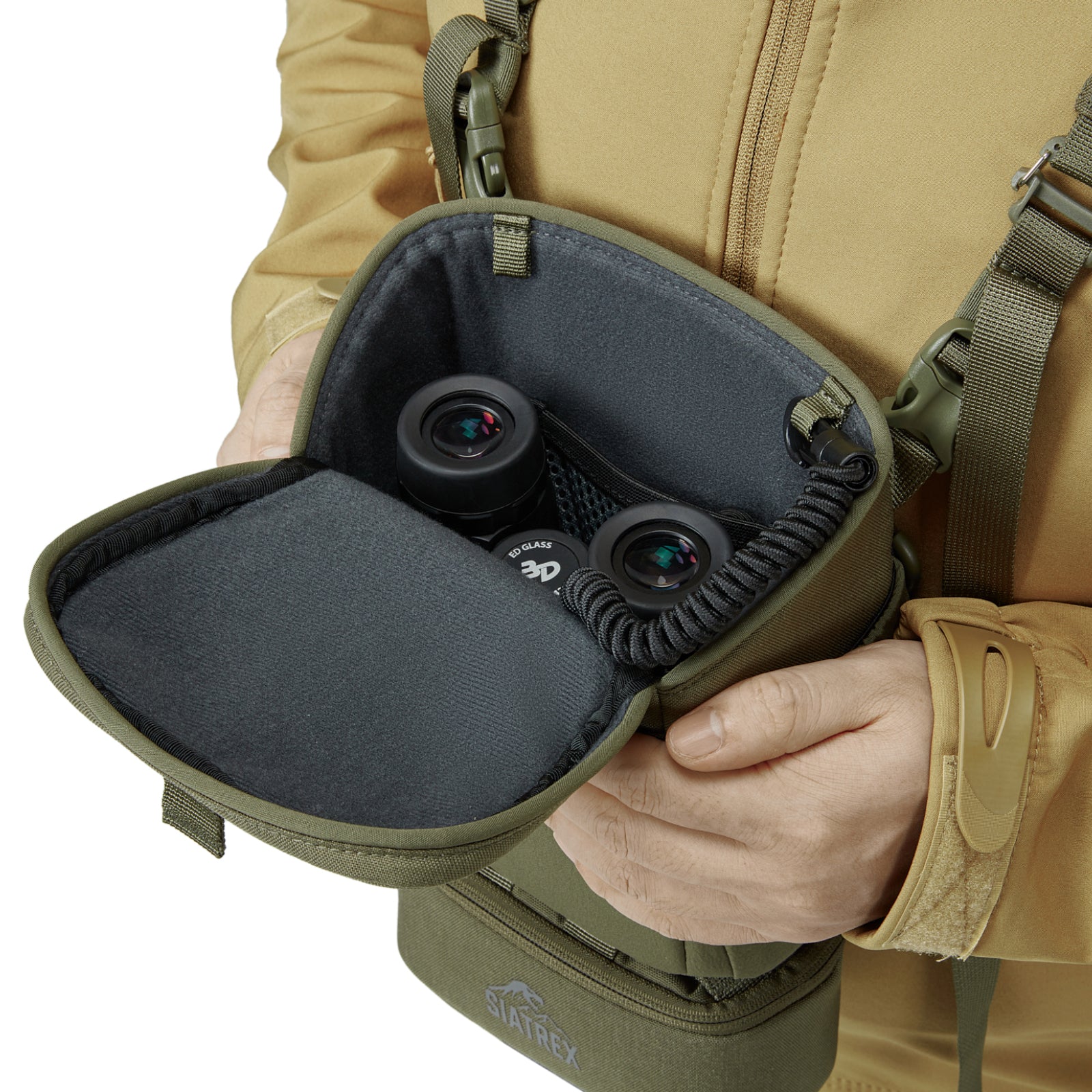 The SIATREX BINO‑X is engineered for hunters who demand quick access, all-day comfort, complete optical protection, and modular expansion. With its MOLLE-compatible design, it can be customized with rangefinder pouches, phone/GPS pouches, bear spray holders, and bottom ammo pouches, keeping all essential gear secure and within reach during any hunt or expedition.