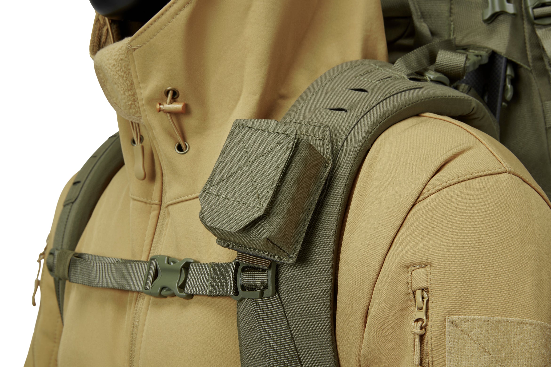 Seamlessly integrates with the SIATREX BINO-X Binocular Harness, attaching directly to the shoulder straps to create a fully unified gear system—keeping optics stable, easily accessible, and reducing extra straps or bulk.